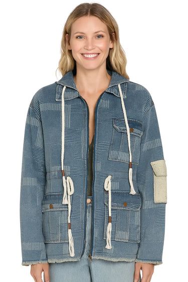 A standout layer with streetwise ease, this jacket merges vintage patchwork and raw-edge finishes with a relaxed silhouette made for everyday movement.